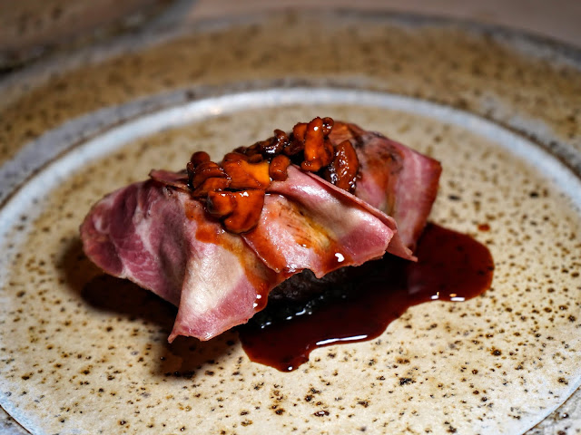 King scallop in jus gras topped with mushroom custard and Himalayan truffle.