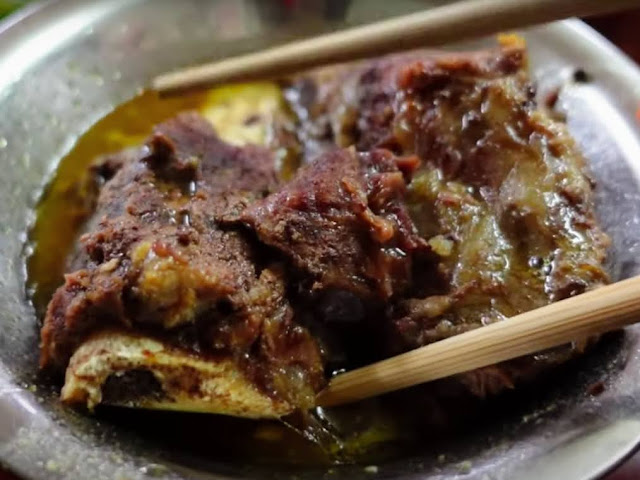 Stewed beef rib shops probably sprung up during Quanzhou's heyday to cater to the Muslim traders. After the departure of the Muslim traders, most of the stewed beef rib shops wound up but the dish survived till this day because Quanzhou locals also acquired a taste for the spice infused beef dish.