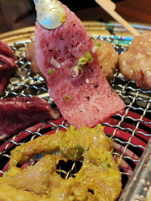 Our host co-owner chef Rayner started his career at Three Michelin Star L'Atelier de Joel Robuchon and is now a corporate culinary instructor. Rayner and partners opened Yak Kin! as they found that Japanese yakiniku worked marvellously with Thai style sauces. The owners called it Thai - Japanese fusion but after our dinner, I personally feel it felt more Japanese - Thai. Partly because I like to eat my grills neat without sauce as the ingredients were super fresh. (Anyway, it's just me lah... .)